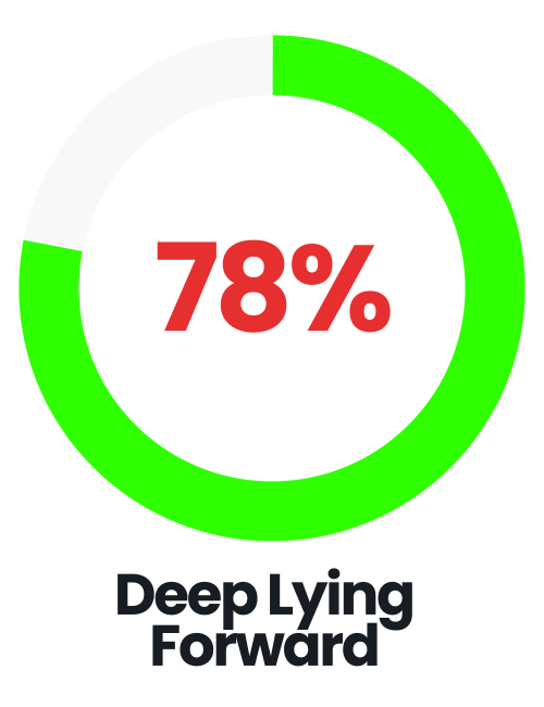Grant is an active presser who contributes well to his team’s out-of-possession shape, particularly in ground duels and ball recoveries. However, his limited aerial involvement and low success rate suggest that he is less effective in physical matchups or when defending long balls. He’s best suited to a pressing system that doesn’t rely heavily on aerial duels from the forward line.