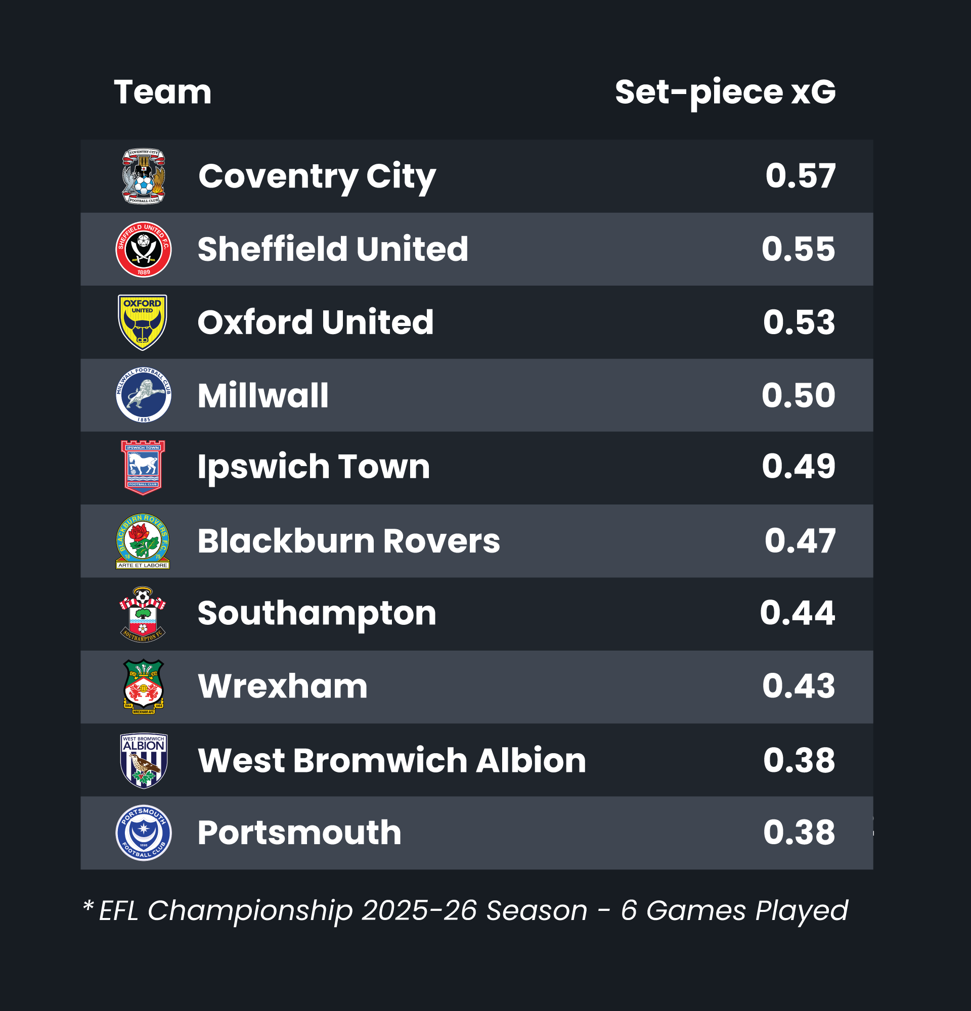 That 0.11 gap, over a Championship season, equates to several additional goals purely from dead-ball situations. With roughly 20% of all goals in the division scored from set-pieces (excluding penalties), adding a specialist like Wagner could give Portsmouth a vital tactical edge, turning routine corners and free-kicks into match-winning opportunities.