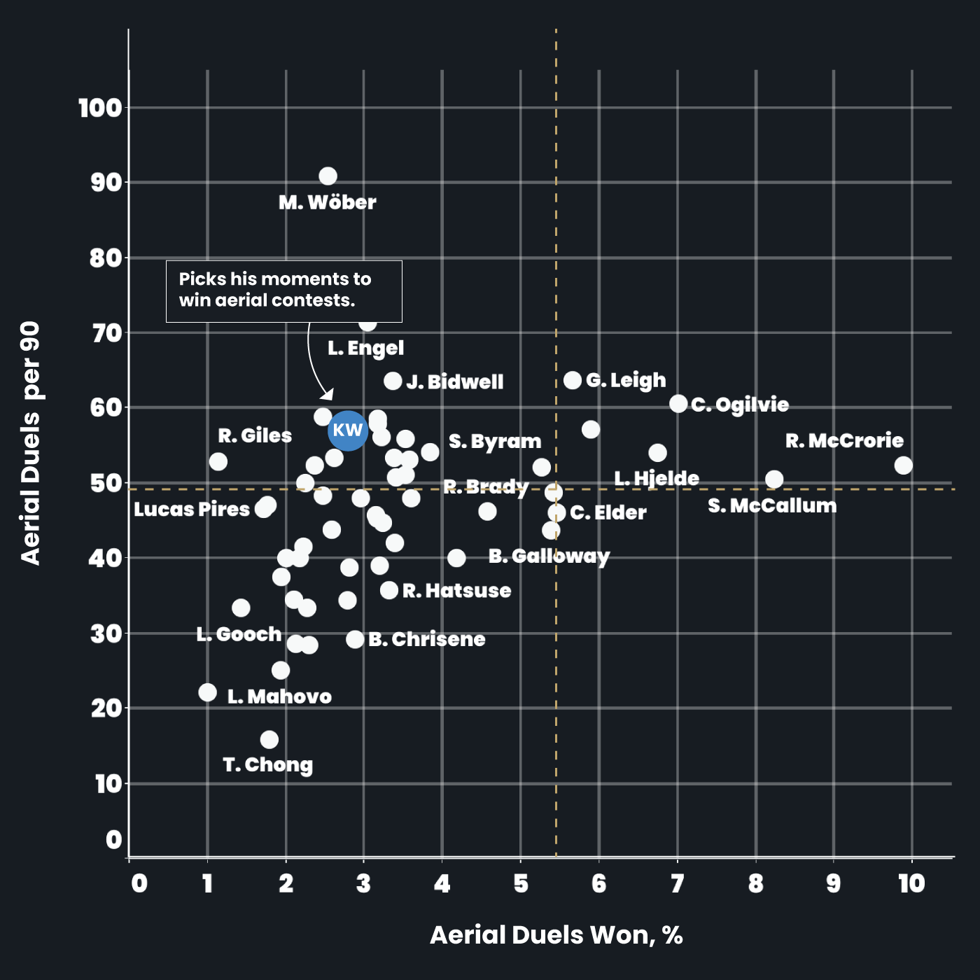 Aerial Duels Won % : 57.5%