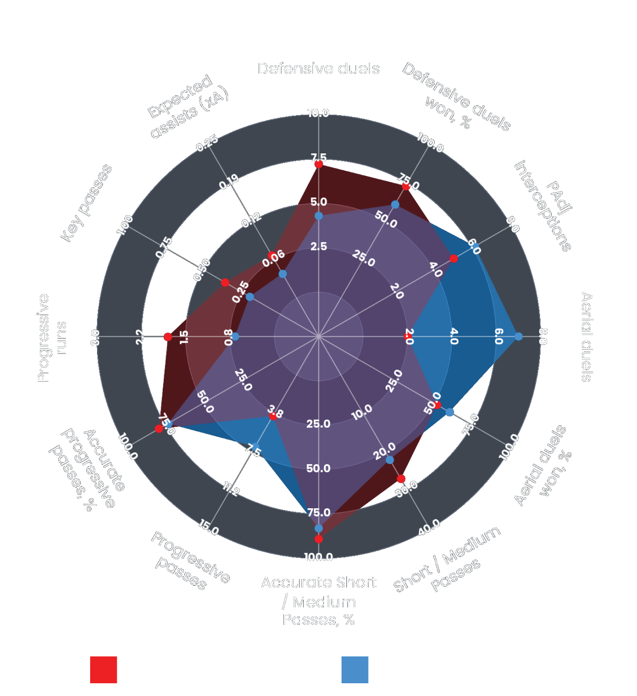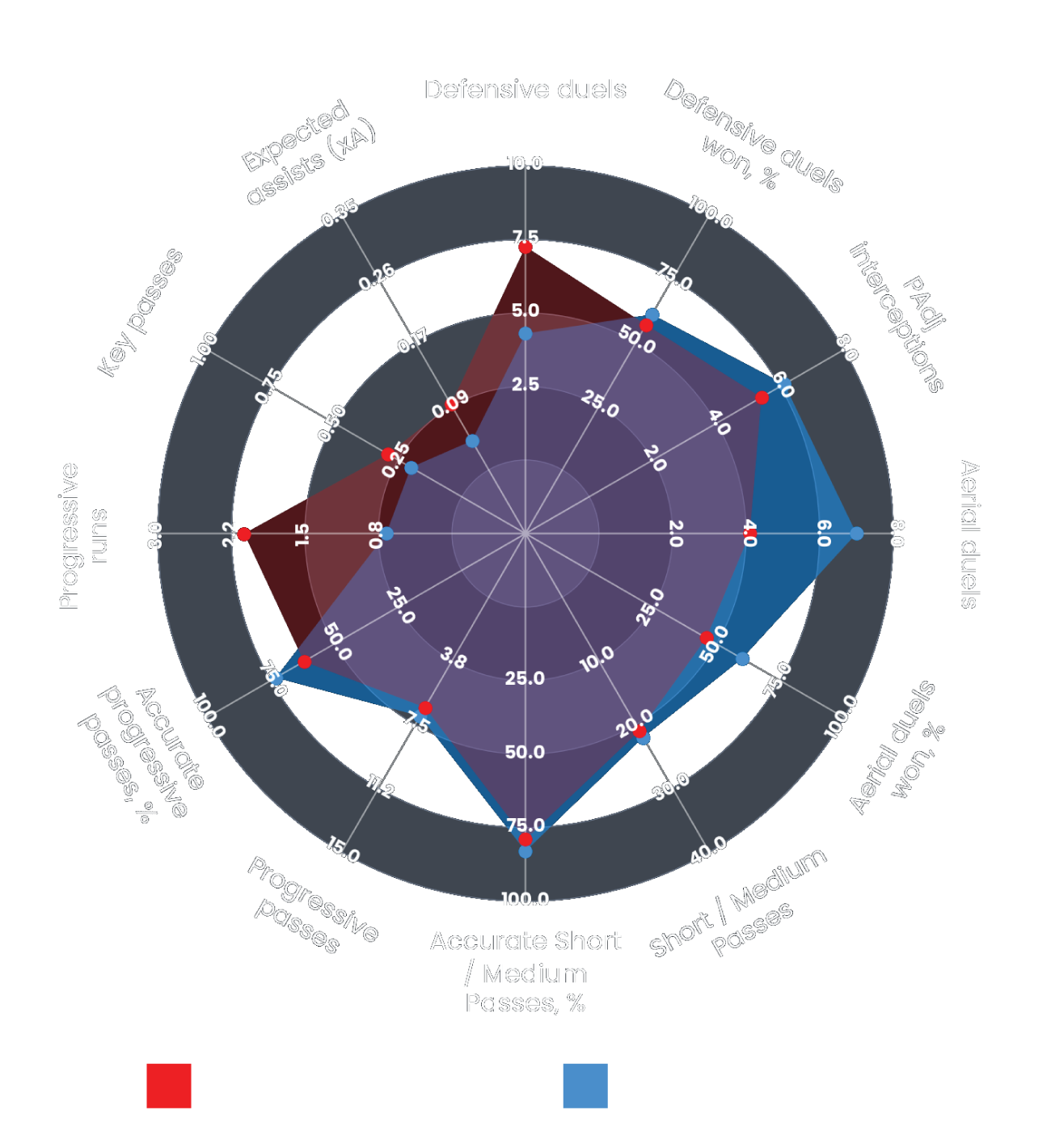 For context, we have also included Portsmouth’s current first-choice left-back, Connor Ogilvie, within the chart. This allows a direct comparison, showing how both players rank on a 0–100 scale across key attributes, using our bespoke Portsmouth left-back framework model.